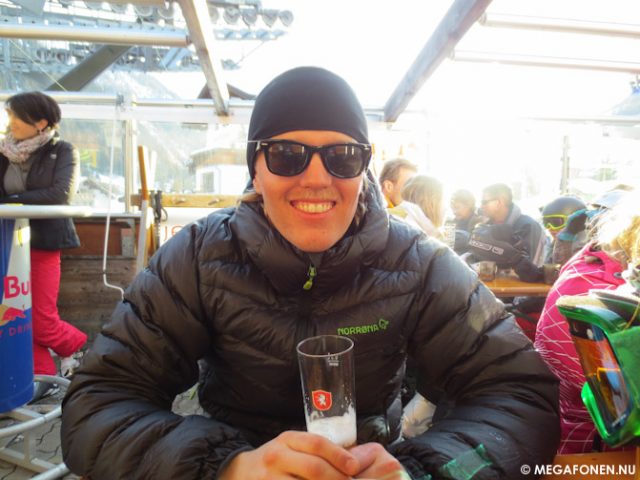 – Torsdagar är det väldigt bra after ski här. Elias sitter långt uppe på berget och har det trevligt just nu, berättar Julia från det lilla caféet som hon sökt upp för att få bättre uppkoppling till datorn.