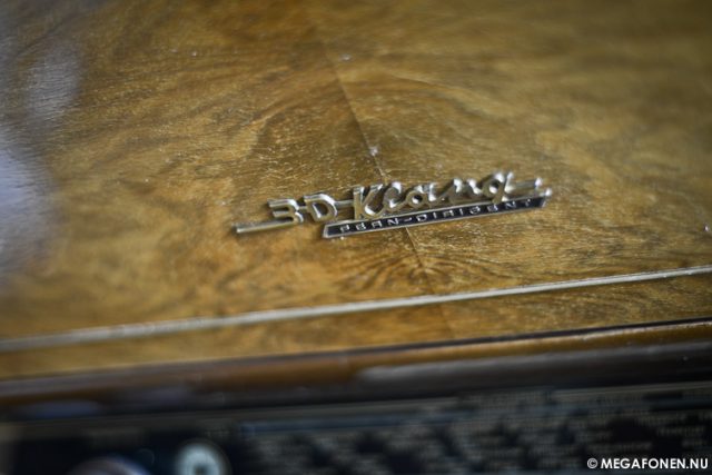 Till vänster om Mimmi står en radiogrammofon och blänker.