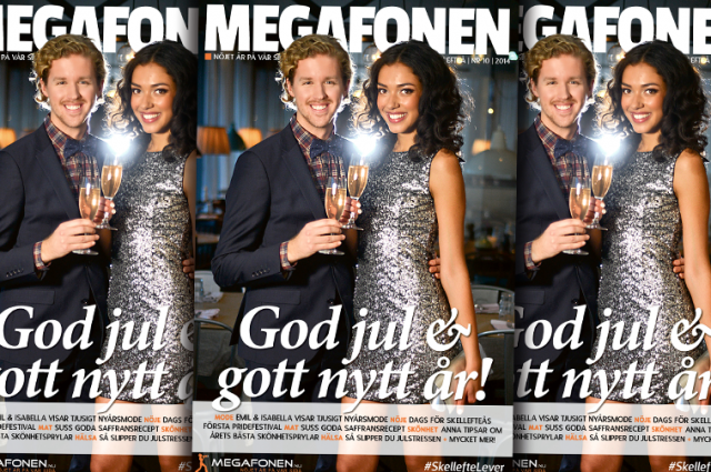 I 2014 års sista Megafonentidning möter vi Mirja Egefjord som berättar om varför Skellefteå Snow Pride är viktigt, Fransesca Quartey som regisserat Julmys på Västerbottensteatern och Gunhild Carling som kommer till Skellefteå i januari. Intervjuer finns även med Niclas Jonsson som samlar in julklappar till behövande barn, Helena Sundberg som startade företag när hon var mammaledig och Thomas Malm som snart ska lansera Droples.