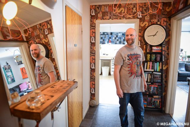 – Ja, det är inget vanligt vitt Ikea-hem, säger Mattias när han visar mig runt.