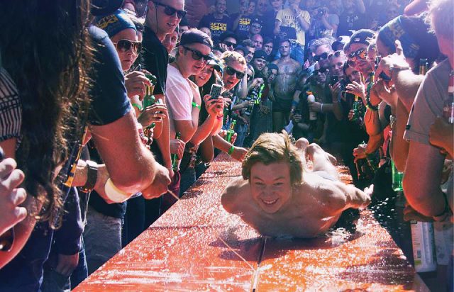 Till årets upplaga av Stadsfesten i Skellefteå plockar Kitteltältet med sig tävlingen som går ut på att glida så långt som möjligt på såpade bord, skriver de på sin facebooksida. Det är en tävling som under många år varit ett stående inslag på Piteå Dansar & Ler.