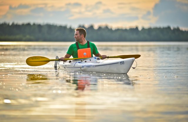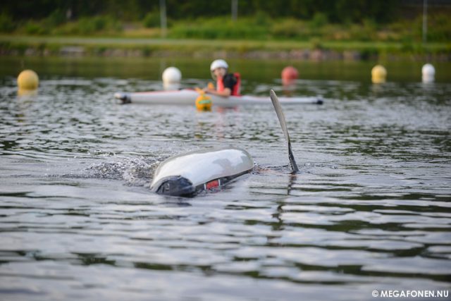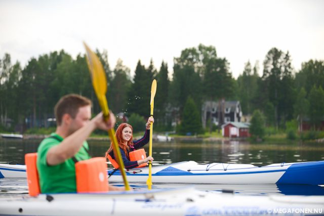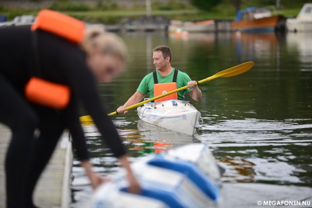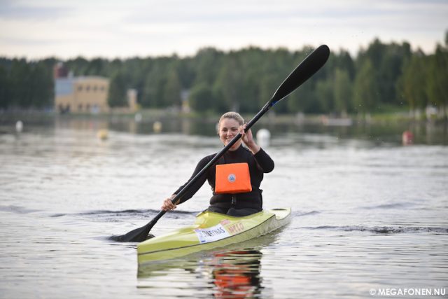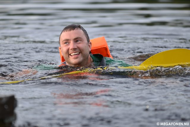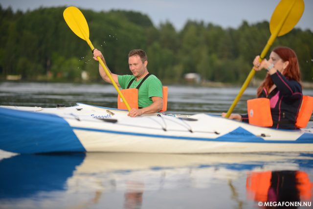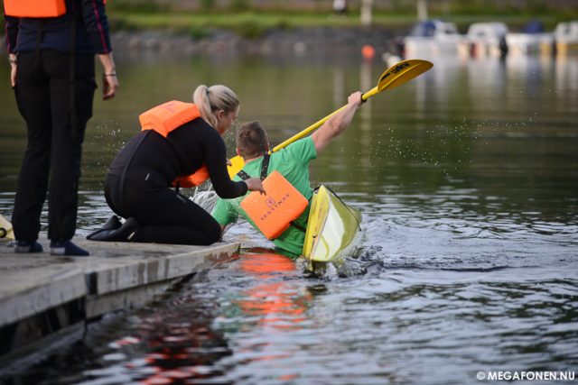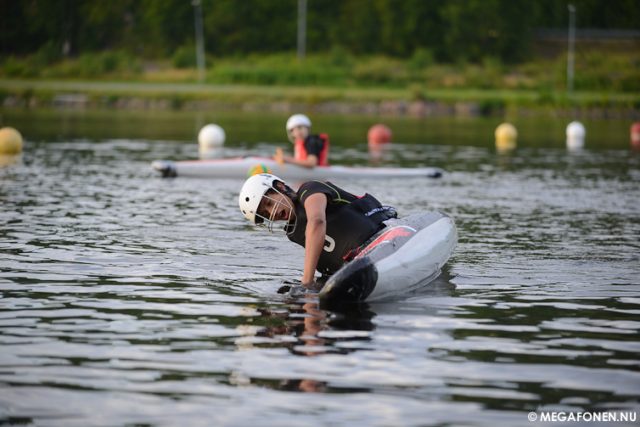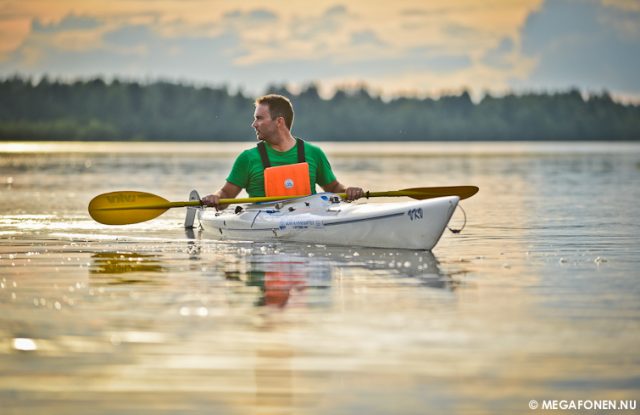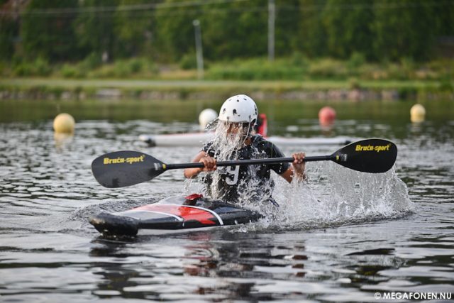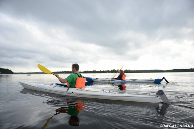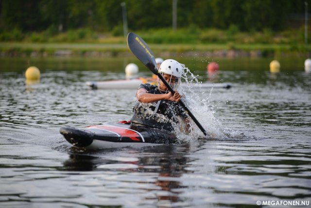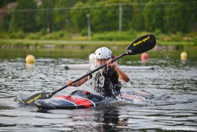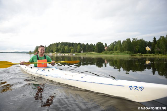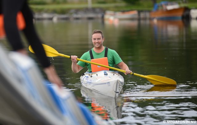 På den andra sidan paddlar Samuel Lindkvist som ser en aning spänd ut.