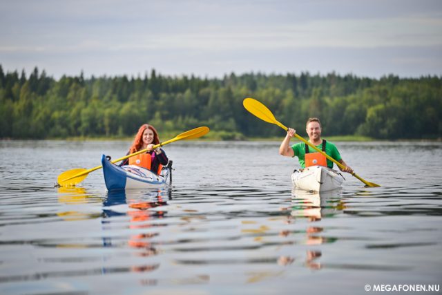 I samma sekund som vi glider ut på det näst intill spegelblanka vattnet förstår jag exakt varför många fastnar för kajakpaddling. Stillheten, tystnaden och närheten till naturen är slående.