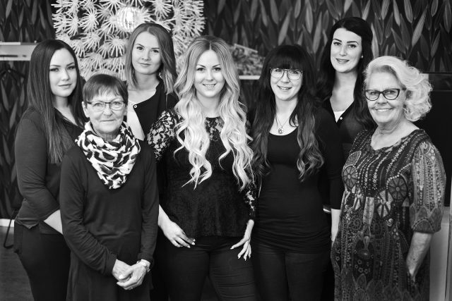 Fannie Svärd, mitten, med några av de frisörer som jobbar på salongen.