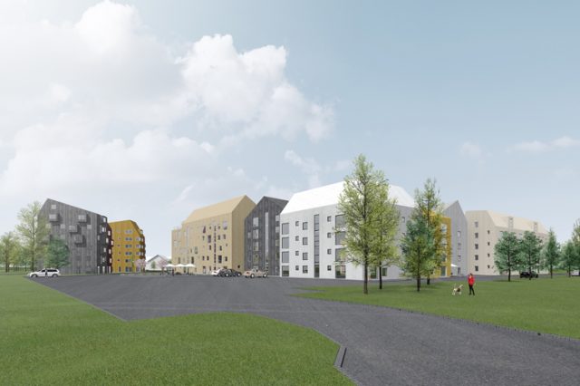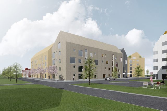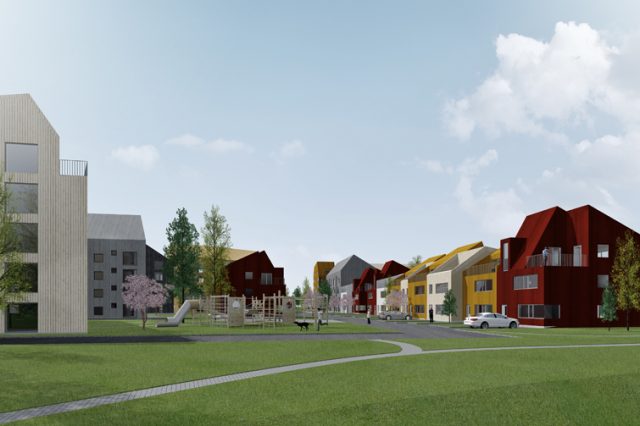 Bilderna visar Nordhallas vision för husen som de vill bygga på Anderstorp. Illustrationer: EnterArkitektur