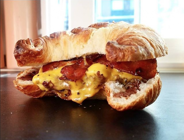 – Snart fredag! Imorgon kör vi chipotleburgare och Croissantburgare! Frasig och syndig. Bacon, cheddar, Nutella och vår handrullade burgare, skriver de på sin instagramanvändare.