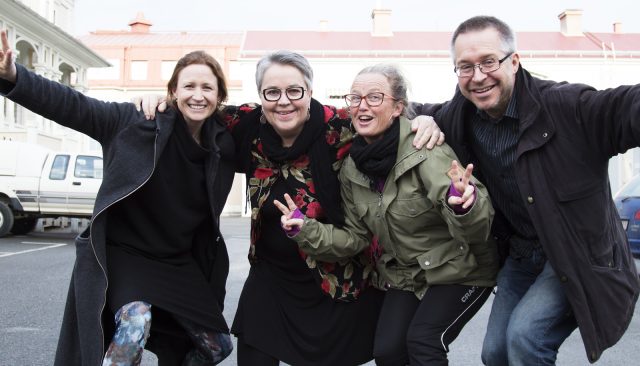 Några av eldsjälarna i Skelleftebygdens berättarförening 2015, Skelleftebygdens berättarförening. Fr v: Malin Åberg, Rose-Marie Lindfors, Ulrica Rauhala och Jan Sehlstedt. Foto: Jonas Lundqvist