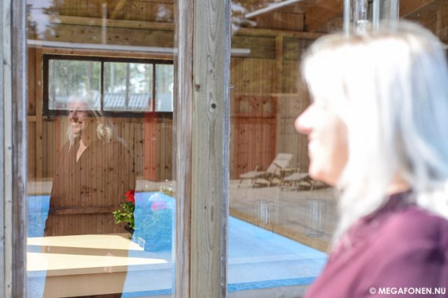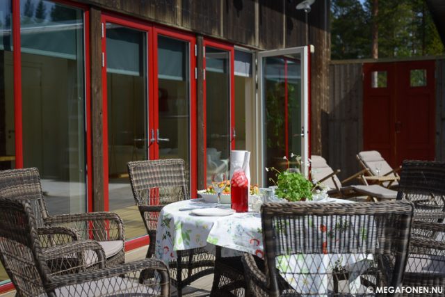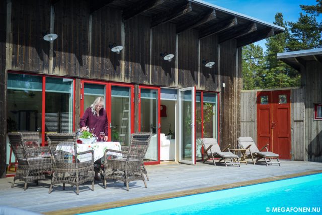 – Vi kollade på olika hustyper och fastnade för funkis-stilen. Vi var till viss del oroliga att det inte skulle smälta in i omgivningen, men jag tycker att det blev bra, berättar Stina när Megafonen kommer på besök en solig eftermiddag i juni.