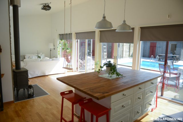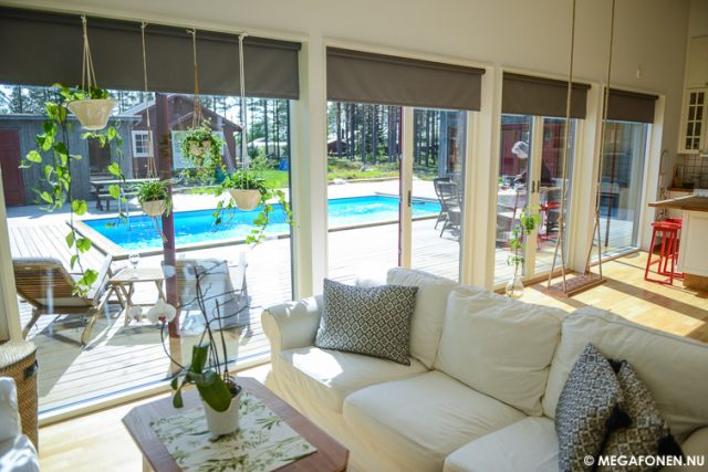 INREDNING Högt i tak, stora fönster och en pool som samlingspunkt i mitten av gården. Följ med till Stina Berglunds sommarparadis i Byske och låt dig inspireras av en stuga som inte ser ut som alla andra.