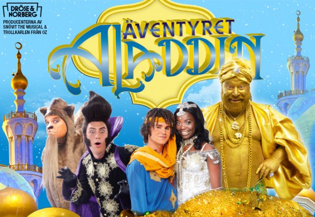 Aladdin är en komisk äventyrsmusikal för hela familjen med skådespelare från den svenska artisteliten, en stor ensemble, spektakulär iscensättning och nyskriven originalmusik. Det skriver producenten Dröse & Norberg – som även ligger bakom tidigare succéer som Snövit The Musical och Trollkarlen från Oz – på sin hemsida.