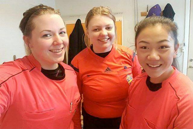 Elin Lundgren, Lovisa Andersson, Thilde Larsson är tre av dem som ska döma fotboll i helgen.