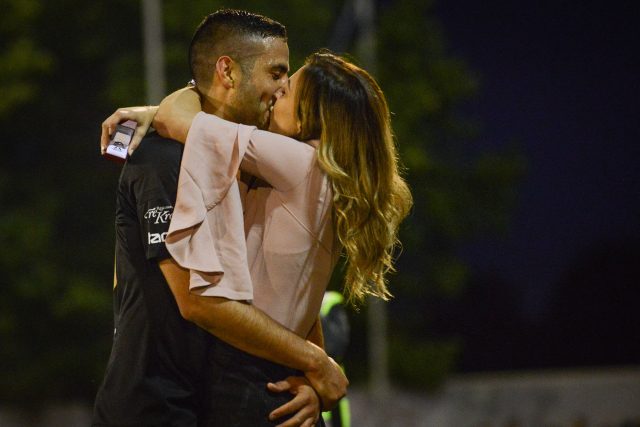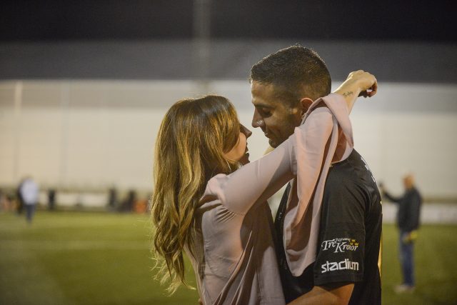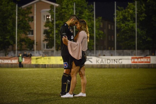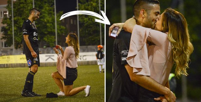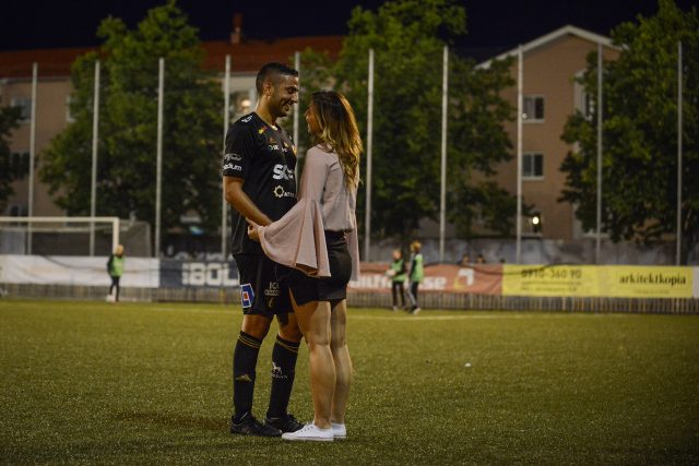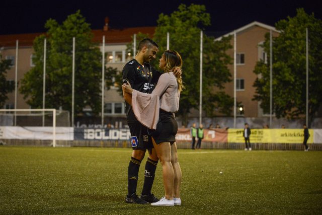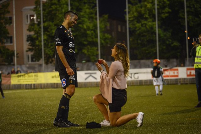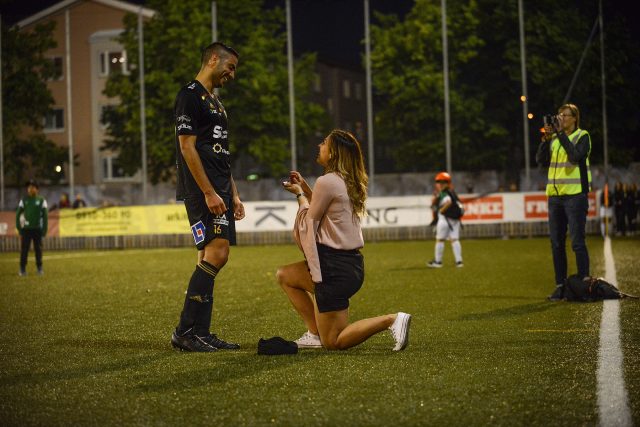 Det var efter slutsignalen av matchen mellan Skellefteå FF och Morön BK som taekwondoproffset Elin Johansson gick in på fotbollsplanen och ropade till sig sin pojkvän Jacob Stephenson som spelar i Skellefteå FF.
