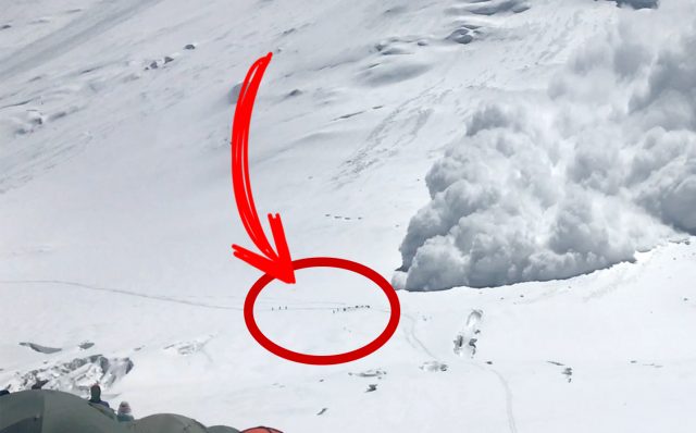 På filmen ovan ser vi lavinen svepa över åtta personer som tagit en paus på vandringsleden. Klicka i HD för bästa kvalité.