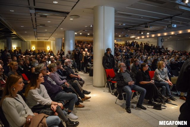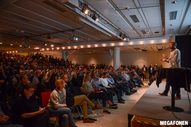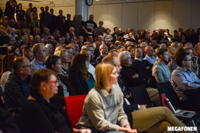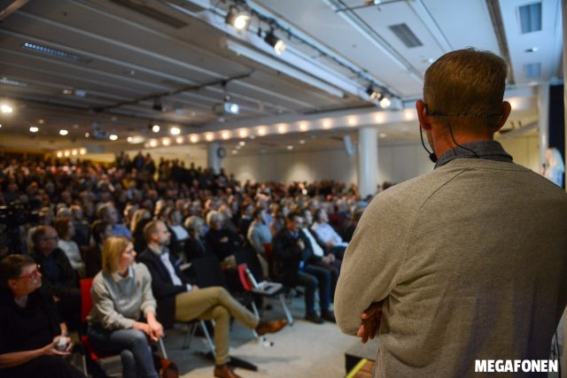 – Det är helt fantastiskt att vi fyller hela lokalen, det bådar gott. Jag hade väntat mig ett par hundra, inte att vi skulle måsta stänga dörrarna för att det var fullt vid 850, säger han till Megafonen.