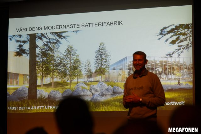 På scenen berättade Northvolts VD Peter Carlsson om hur efterfrågan på batterier väntas öka dramatiskt och att det gäller att vara tidigt ute som nykomling på marknaden. Han talade även gott om den gröna el som kan levereras i Skellefteå och flera andra fördelar med staden som lokaliseringsort.