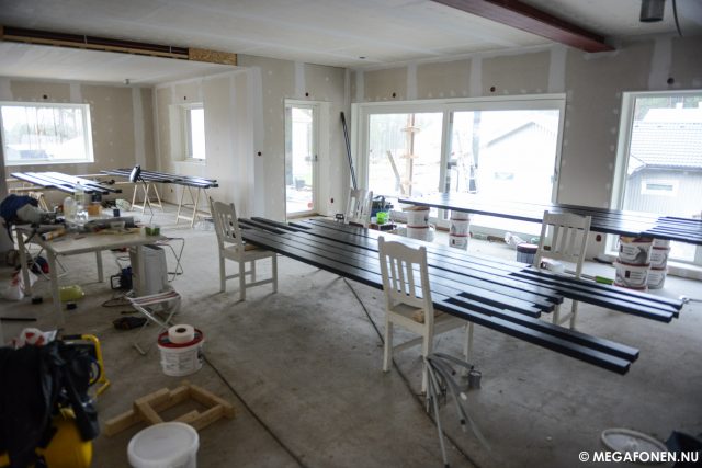 – Då sänktes så klart tempot här då vi bara kan arbeta med huset på kvällar och helger. Dessutom har vi två grabbar där hemma som man vill hinna träffa också, säger Patrik.