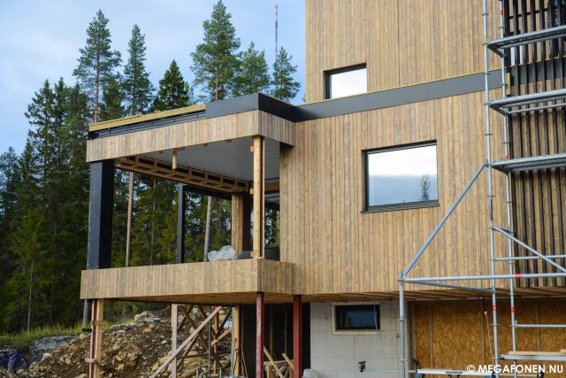 Huset är som vi berättade om förra året nästan 10 meter högt med souterängvåningen inräknad. I stort har de följt de ursprungliga planerna – bortsett från fasaden som till en början var tänkt att vara av puts.