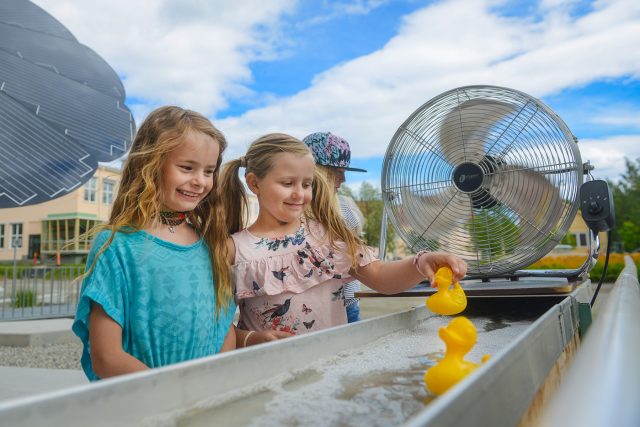 I utställningen, som hela tiden förändras, får besökarna prova på allt från att koppla avloppsledningar under en stad och veta mer om hur skogen fungerar – till att generera ström i ett vattenkraftverk och utmana hjärnan på olika sätt.