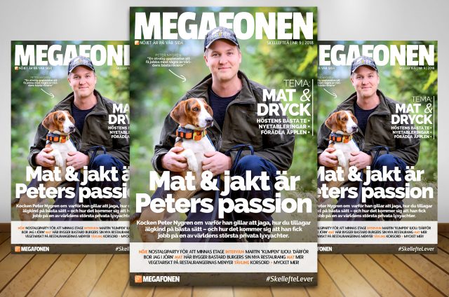 I månadens nummer av Megafonentidningen kan du ta läsa om den jagande kocken Peter Nygren som arbetat på en lyxyacht, Bastard Burgers nya restaurang, Martin ”Klimpen” Iliou som flyttat till Jörn, att det blir allt mer vegetariskt på restaurangernas menyer och Alhems Trädgård som numera serverar Napolitansk pizza.