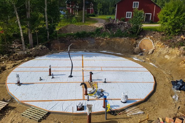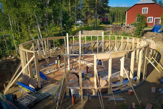 – Men vi bor i Norrland och gillar att ha fötterna varma, så vi lägger in golvvärme som kommer att värmas upp via solfångare och en vedpanna då det behövs på vintern, säger Laura.