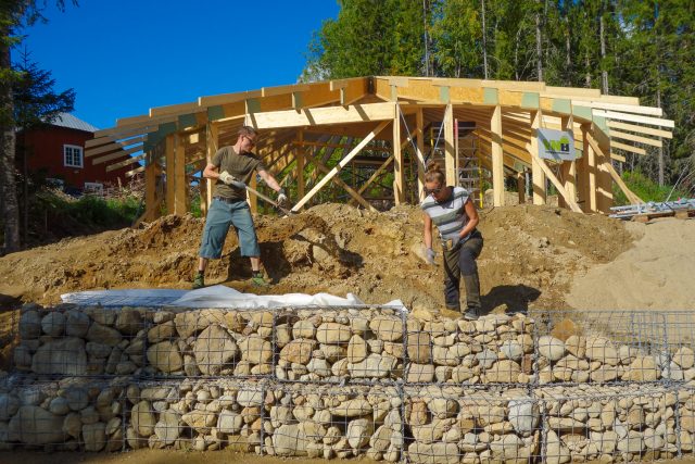 – Vi är mer teoretiker än snickare så det var skönt att få hjälp med den biten. Att bygga med halmbalar och lera kan dock alla göra och eftersom vi vill göra så mycket som möjligt själva så är det en bra lösning för oss, säger Laura.