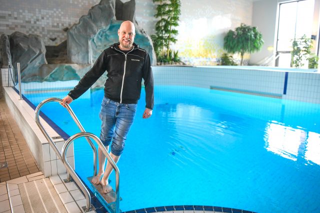 – Och alla grejer är sprillans nya och rengjorda före dom får läggas i bassängerna, säger han.