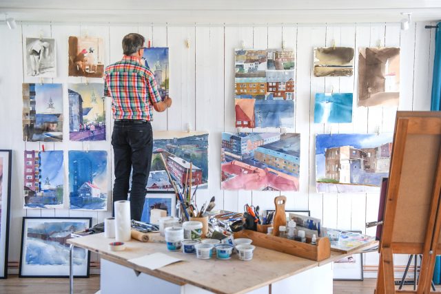 – Hit kan du komma som du är – oavsett om du promenerar broarna runt eller varit en sväng på stan. Det är självklart inget köptvång, utan bara trevligt ju fler som tittar förbi, säger Åke som även tar emot besök i ateljen hemma i Östra Falmark.