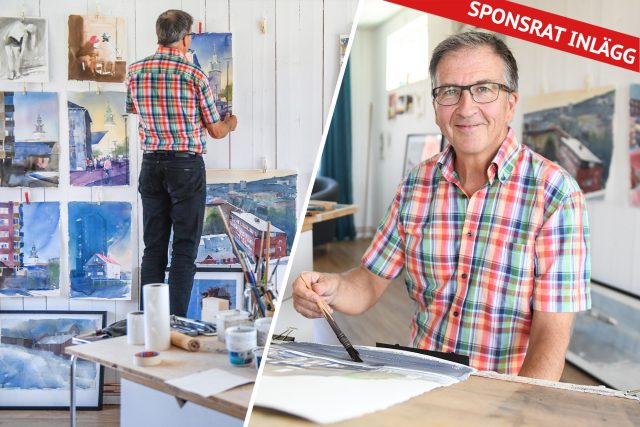De senaste årens målande har resulterat i flera utställningar. Den första hade tema dans – men när han nu ska ställa ut är det ett nytt typ av tema: Stadsbilder från Skellefteå.