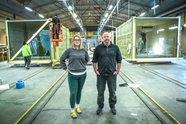– Vi brukar i vanliga fall inte bygga på det här viset i KL-trä, men när vi fick frågan om vi kunde leverera ville vi vara med, säger Petra.