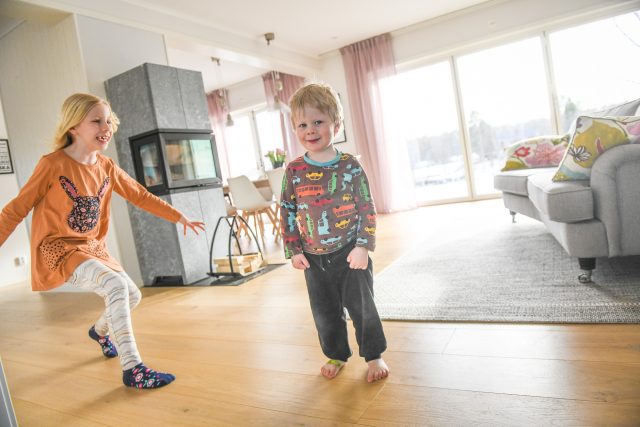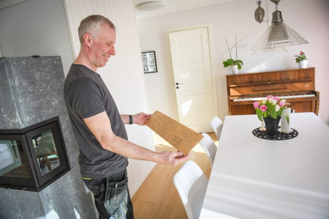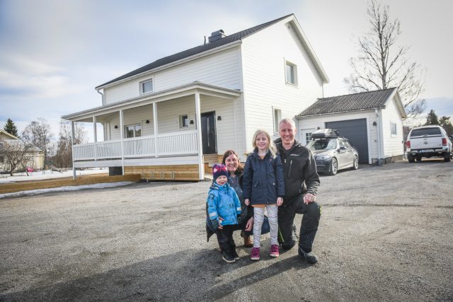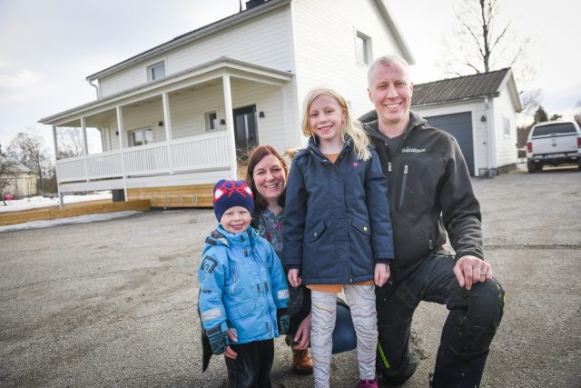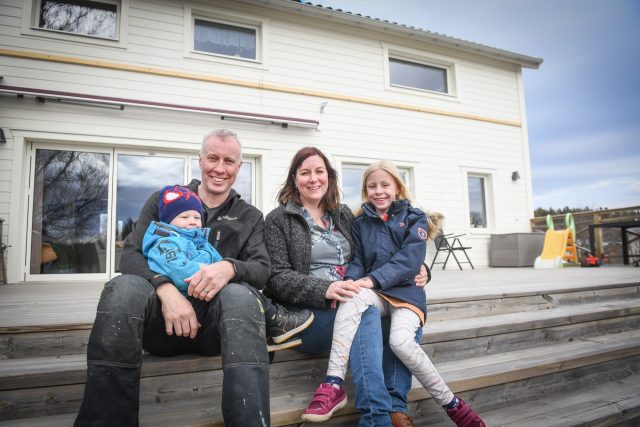 – Vi hittade en skiva under trägolvet där husets historia och vilka som bott här beskrivs. Det är en rolig detalj att ha kvar, säger Dennis som började med att renovera övervåningen innan familjen utökades med frun Madelene och barnen Sofia och Leon.