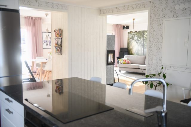 På utsidan är den mest iögonfallande förändringen att huset sedan 2018 har vit träpanel.