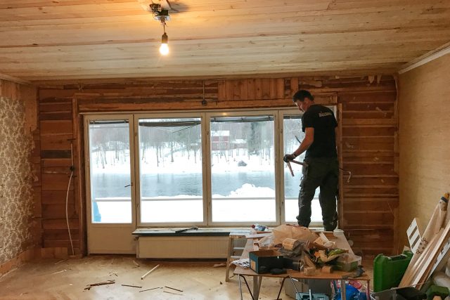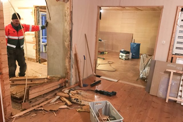 – Fördelen med timmerstommen är att det är rejält och stabilt, men det ger även vissa begränsningar i hur vi kan bygga om, säger Madelene.