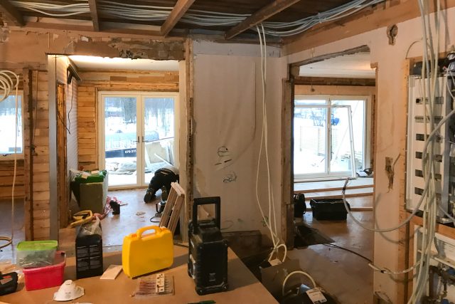 Han drog direkt igång en omfattande renovering. Men det är som nämnt inte första gången huset förändrats. För länge sedan togs en del av huset bort för att flyttas till en annan tomt i Bergsbyn, och på 60-talet kläddes det in i tegel samtidigt som en källare grävdes under byggnaden.