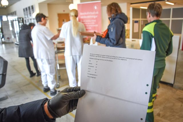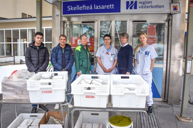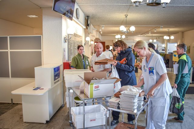 Vid halv tio-tiden överräcks maten till mottagarna på Skellefteå lasarett. En av dem är Christina Appelblad, avdelningschef vid ambulansen.