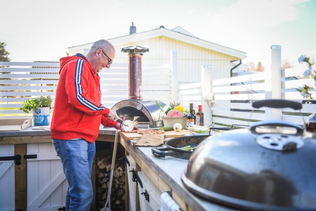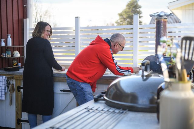 Linda och Håkan Holmqvist bor på Alderholmen i Ursviken. De hade pratat om att göra ett utekök i många år, men inte hittat den perfekta platsen.