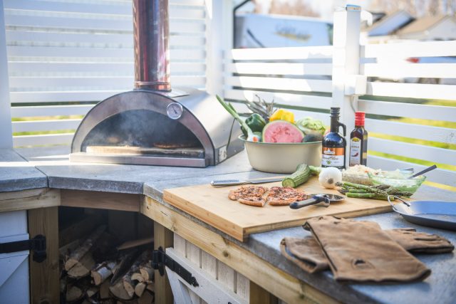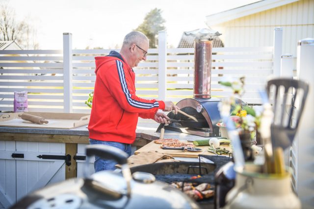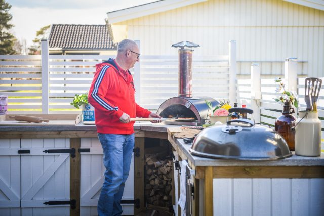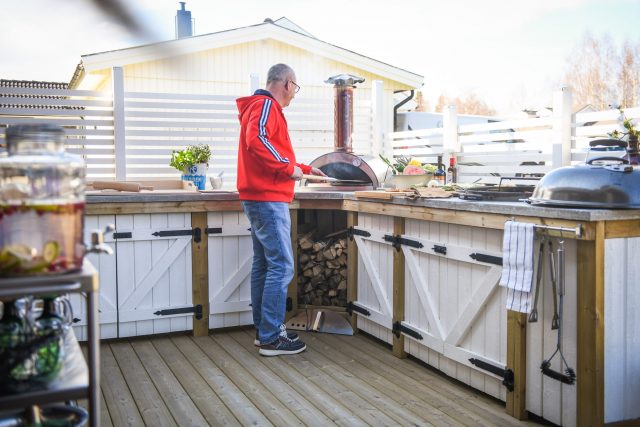 – Vi visste att vi ville ha en pizzaugn, och att den skulle stå i ett hörn. Sedan har vi utgått från den när vi gjort resten, säger Linda.