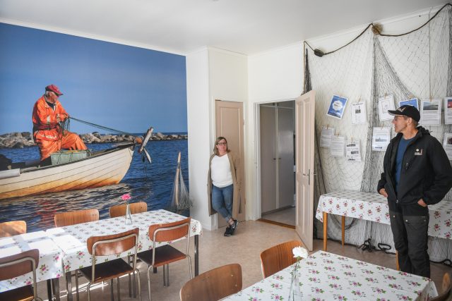 Med mig på bryggan finns Jeanette Larsson som driver Kinnbäck Skärgårdsturism med Mats Johansson, samt de två Piteborna Elaine Marklund och Per Lundmark som ska övernatta två nätter i öns lotshus.