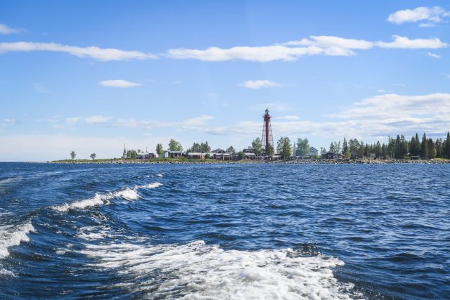 Solen skiner och termometern visar 18 grader när jag parkerar bilen vid hamnen i Kinnbäck norr om Byske, drygt 30 minuter från centrala Skellefteå. Det blåser svalkande och behagligt när båten som ska ta oss till Pite-Rönnskär närmar sig.