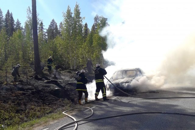 – Kalvträsk kom dit först. De lyckades både släcka bilen och hindra branden från att sprida sig i skogen, säger Henrik Lindgren och ger räddningsvärnet beröm.