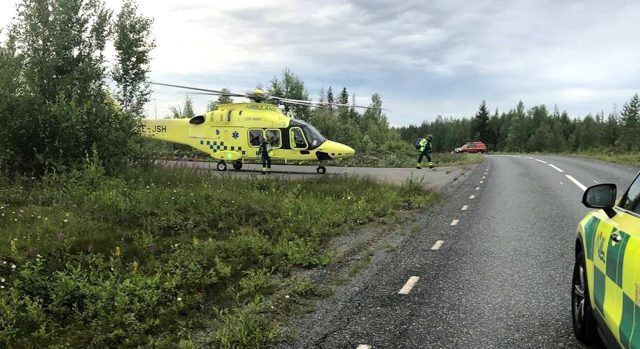 Bilen ska enligt uppgifter ha kommit av vägen och kört in i ett träd. Väl på plats kunde räddningstjänst och polis konstatera att passageraren i bilen, en kvinna i 40-årsåldern, var fastklämd. När räddningstjänsten fått lös henne togs hon med ambulanshelikopter till sjukhus.