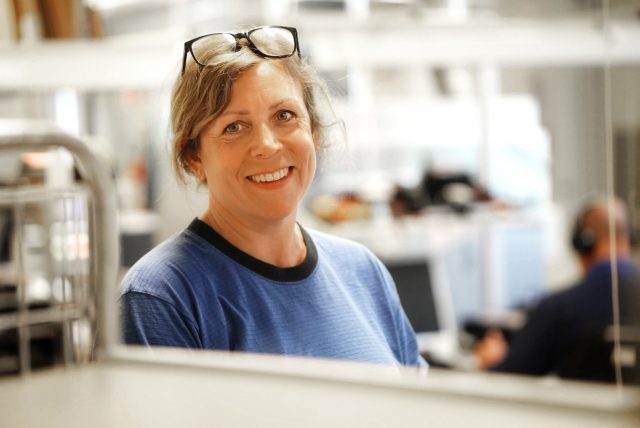 En av LEAB:s produktionstekniker är Therese Ronneklev. Hon gick en social linje på gymnasiet och inledde sin yrkesbana inom äldreomsorgen.