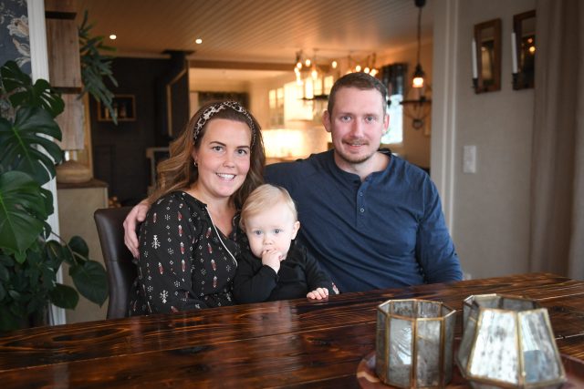 • Cecilia Hällberg och Joakim Larsson tillsammans med sonen Axel.