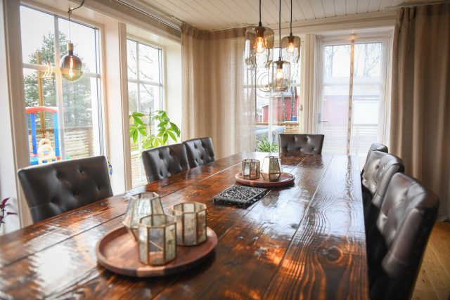• Det stora matsalsbordet har Joakim byggt själv. Foto: Megafonen