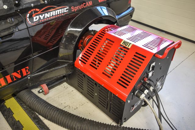 De jobbar med programmeringsutrustning i framkant och en navdyno (bromsbänk) som klarar drygt 2 000 hästar. Trion berättar att utrustningen är unik ovanför Umeå.