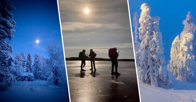 Långfärdsskridskor i fullmåne. Ostviksfjärden. Foto : Mikael Eriksson