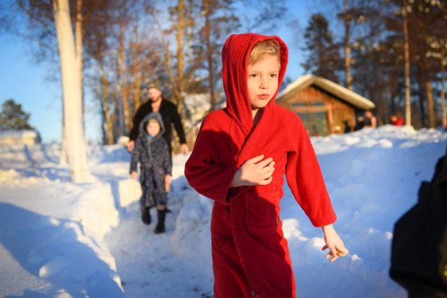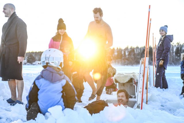 Solen strålar över Ursviksfjärden denna lördag i mitten av januari. Än är läget lugnt på Alderholmen när jag möter upp John Eriksson och Charlotta Havh vid den värmande eld som sprakar utanför bastun. Termometern visar kring -10 grader.