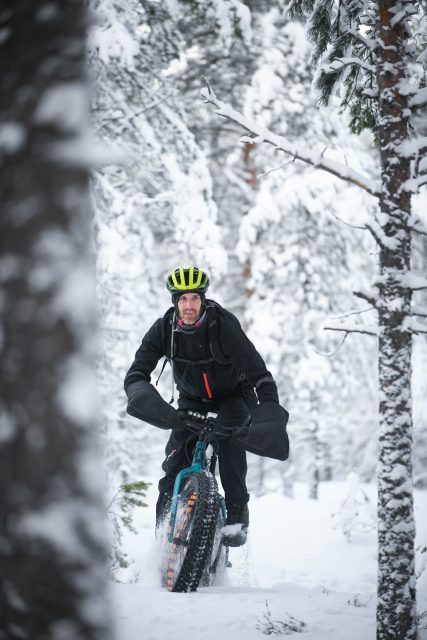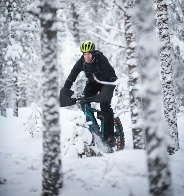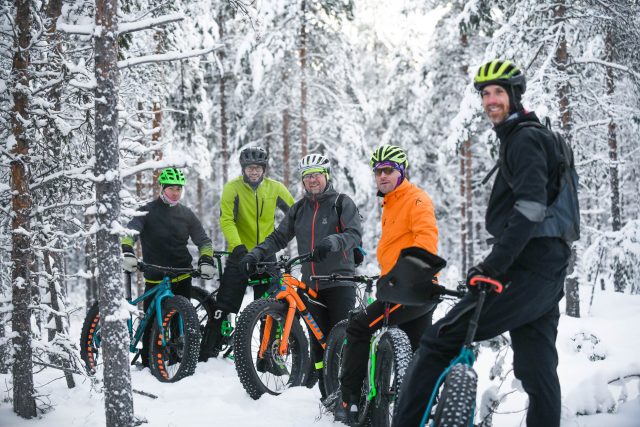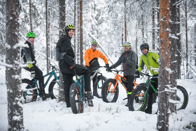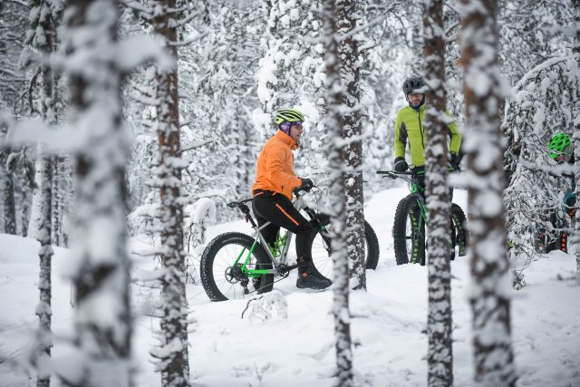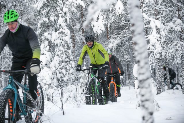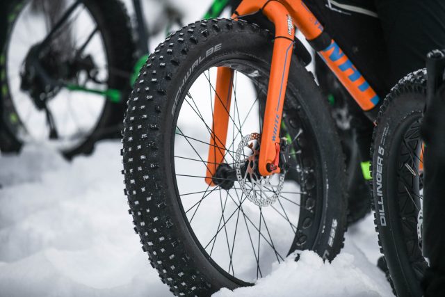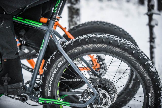 För att kunna cykla på snön använder de så kallade fatbikes, där den största skillnaden mot en vanligt Mountainbike är de rejält breda däcken.