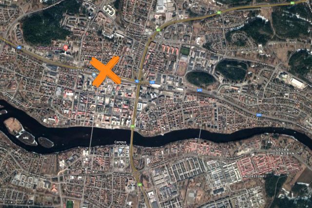 Enligt angivna koordinater ska olycka ha skett öster om Skellefteå lasarett. Foto: Google