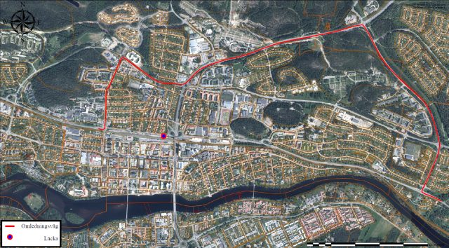 En vattenläcka har uppstått i anslutning till Norra Järnvägsgatan. Vägen stängdes av i höjd med Vinkelgatan vid lunchtid på onsdagen. Numera leds trafiken om i enlighet med kartbilden och kommunen uppmanar trafikanter följa anvisningarna på plats.