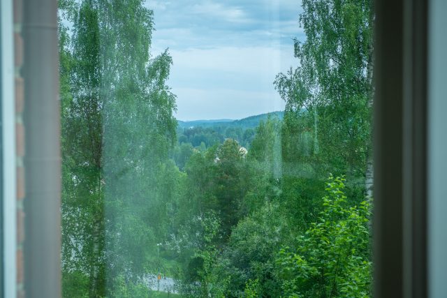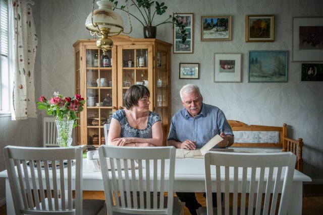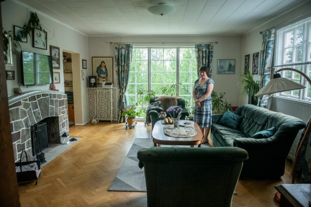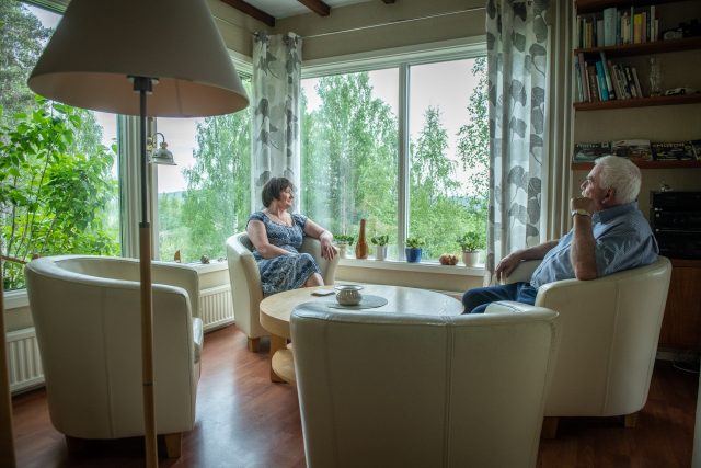 – Det är många som tycker att jag borde ta bort några träd för utsiktens skull, men jag gillar björkarna. De släpper igenom ljus på vinterhalvåret och skuggar skönt på sommaren, berättar Gerhard Norlund som bor i huset tillsammans med sin fru Tatiana.